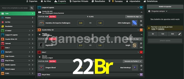 O 22Br oferece uma grande seleção de opções de apostas em e-sports com probabilidades competitivas